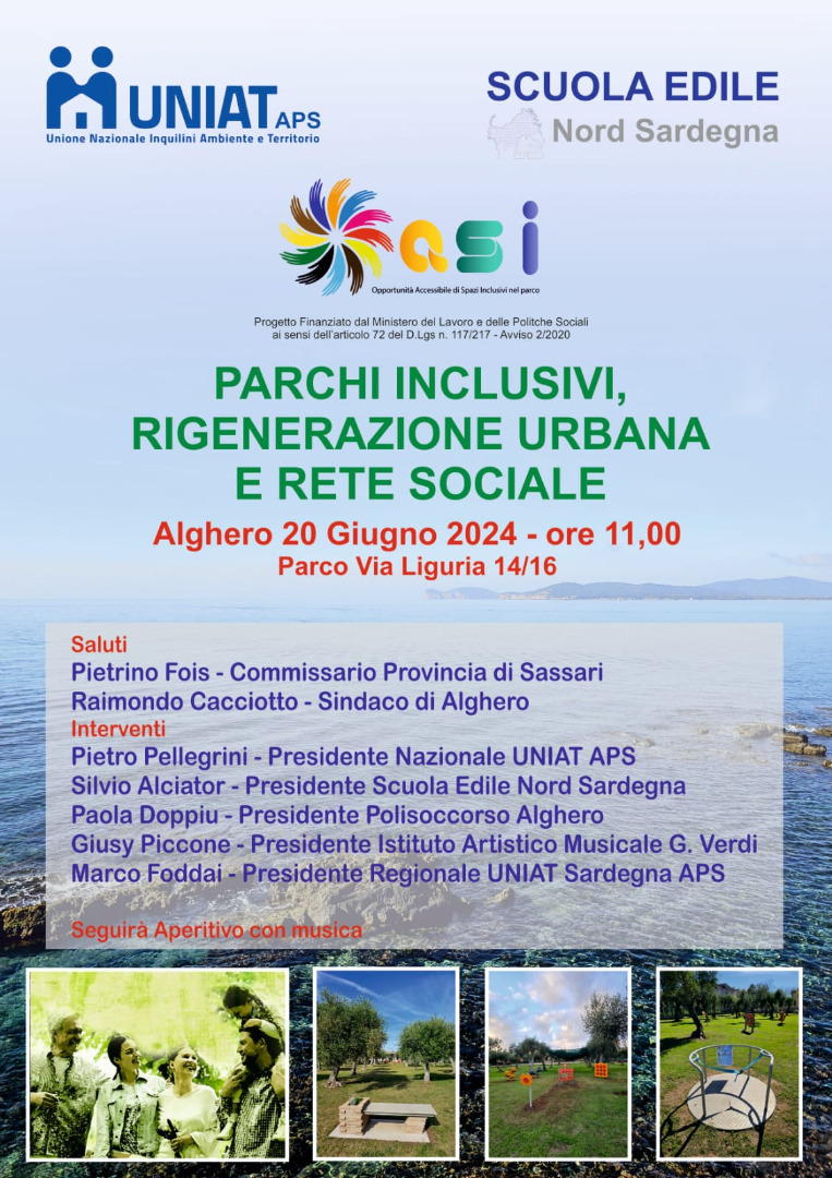 Evento “Parchi inclusivi, Rigenerazione Urbana e Rete Sociale” – presso il Parco di Via Liguria, 14 – Alghero – organizzato da UNIAT Nazionale APS, Uniat Sardegna APS e la SCUOLA EDILE del Nord Sardegna.