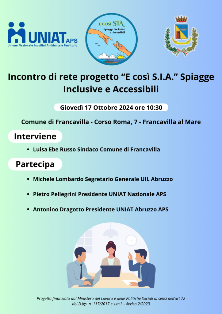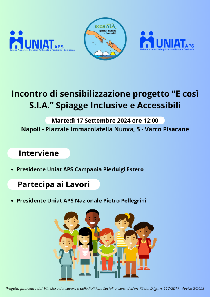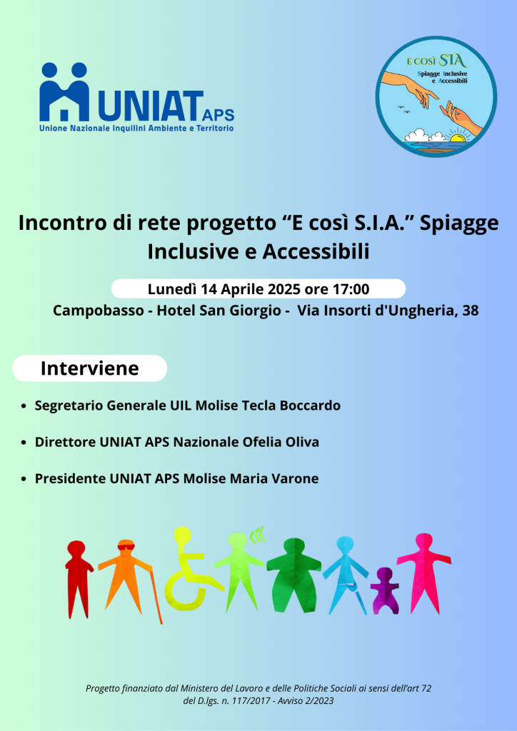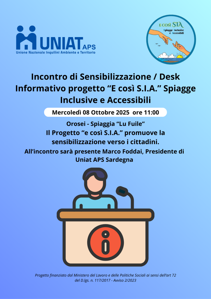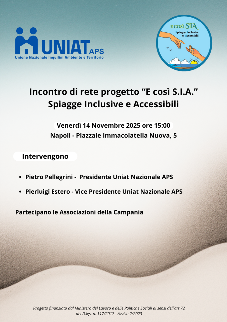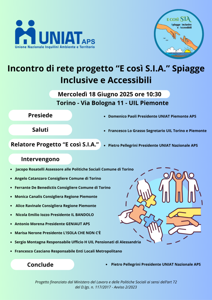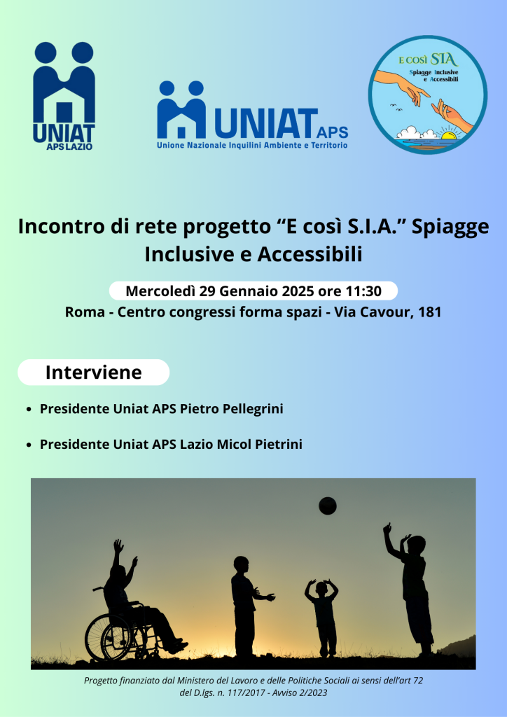 UNIAT, unitamente ai propri partner, intende realizzare un progetto finalizzato a favorire i processi di inclusione sociale delle persone con disabilità, degli anziani con problemi di autonomia e, più in generale, di tutte le persone con mobilità ridotta, anche temporanea, attraverso la realizzazione di interventi che aumentino l’accessibilità alle spiagge di mari e laghi. Una soluzione innovativa che guarda alla richiesta di supporto da parte delle persone con limitazioni (fisico- motorie, ma anche cognitive, sensoriali, …) in maniera innovativa, non ragionando distintamente per singole categorie di destinatari ma trasversalmente per “bisogni assistenziali” comuni che possono essere efficacemente affrontati attraverso attività che promuovano i diritti, riducano le diseguaglianze e accrescano le opportunità sociali, anche mediante la realizzazione delle altre attività (di sensibilizzazione e di animazione territoriale) promosse dal progetto.